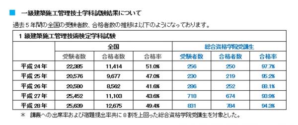 平成28年度 1級建築施工管理技術検定 学科試験合格発表分析 総合資格学院 基準達成受講生の合格率94 3 を達成 不動産のいえらぶニュース