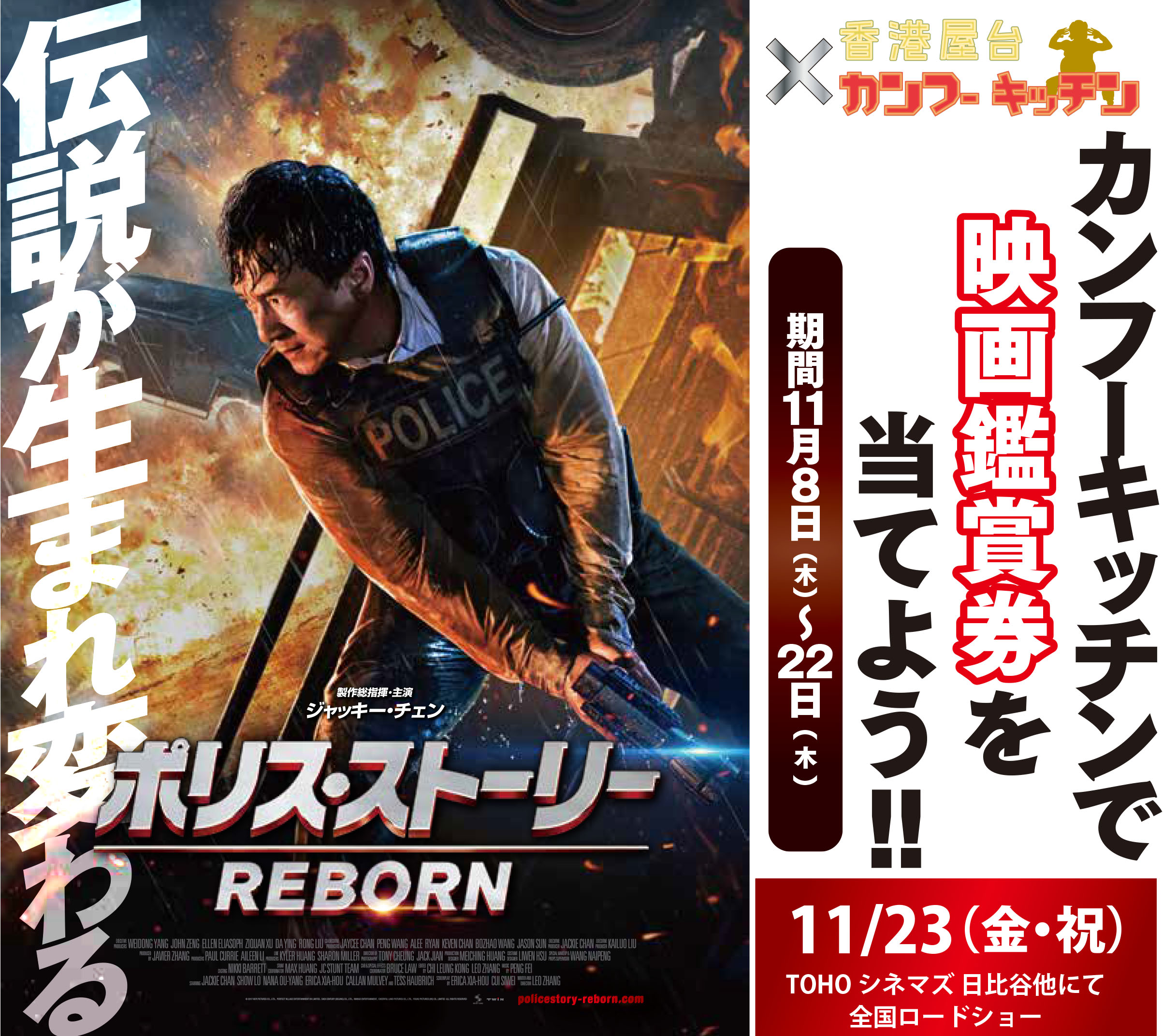 ジャッキー チェン主演映画 ポリス ストーリー Reborn 劇場鑑賞券ほかオリジナルグッズ が抽選で当たる 香港屋台 カンフーキッチン にてプレゼントキャンペーン開催 Ddホールディングス店舗総合情報サイト